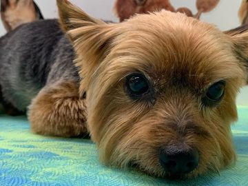 Prior to your pet’s grooming appointment, we ask that you ensure your dog has had a walk or some exercise. Please make sure your dog has completely relieved itself. Dogs in the salon can remain cage-free if picked up once grooming is completed.